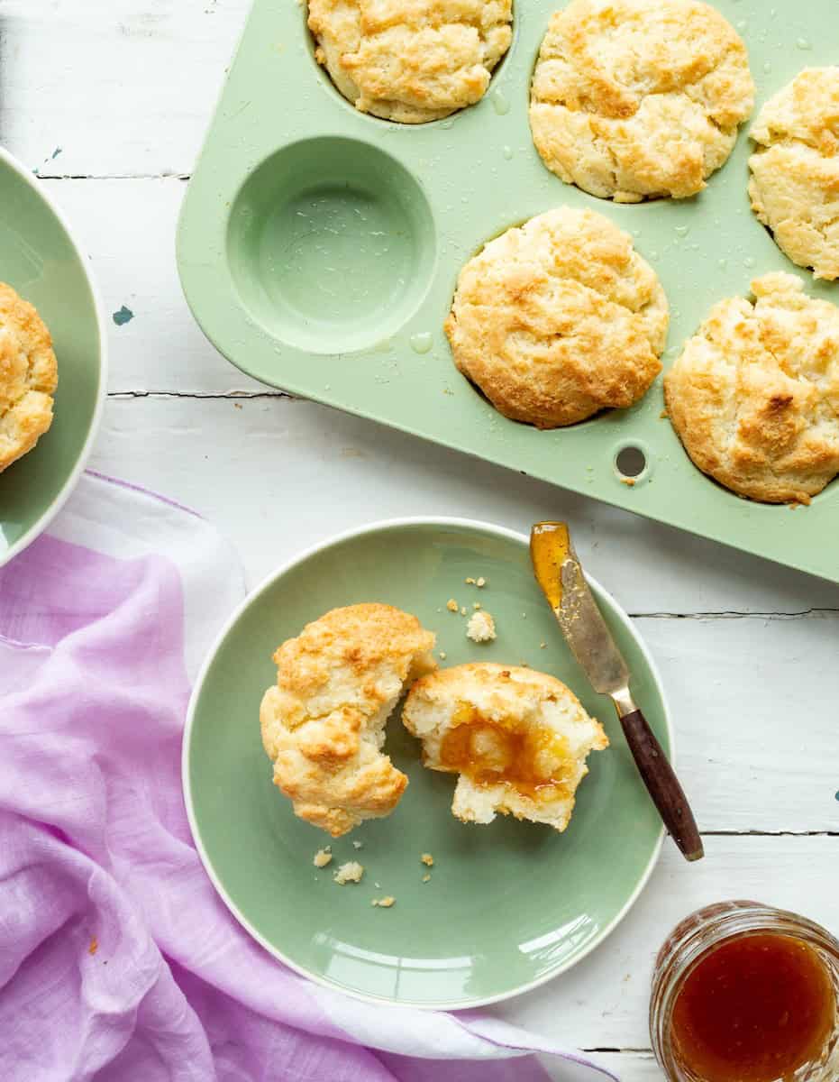 - Bake for 20 to 22 minutes, or until the biscuits are cooked through and golden brown. Remove from the muffin tin and serve warm.