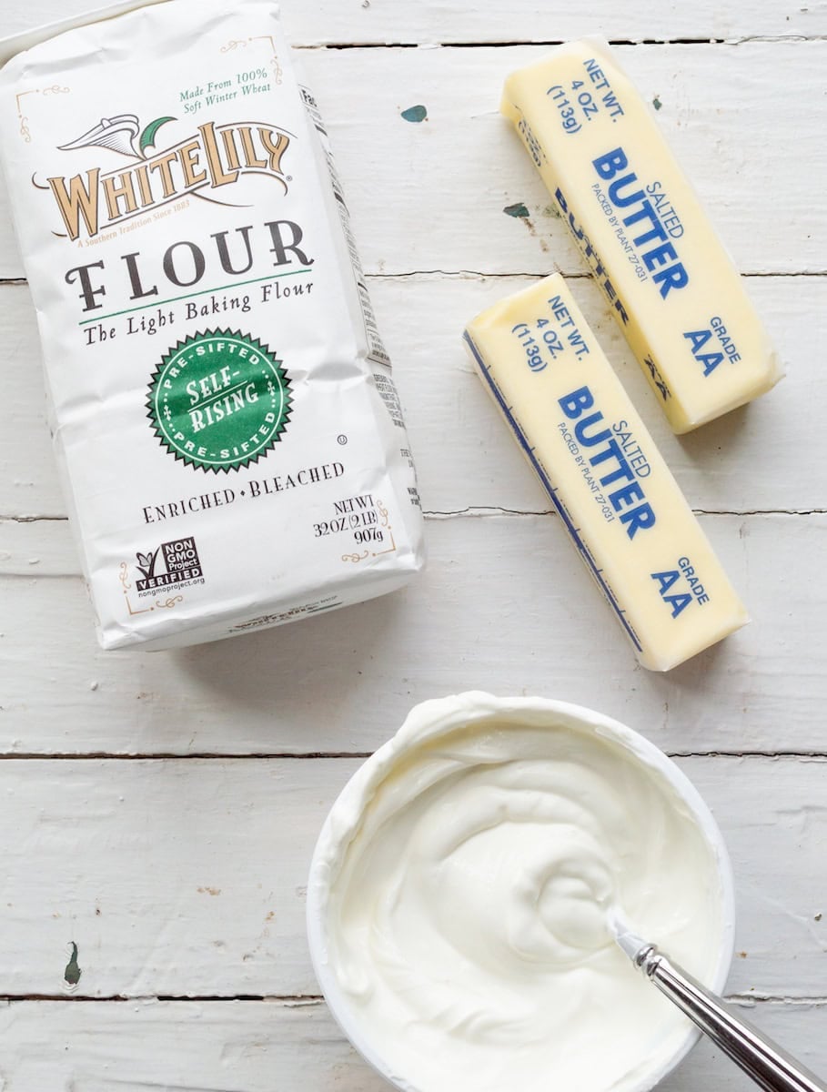 - Sour Cream - If you don't have sour cream, full-fat plain Greek yogurt will give you close to the same results. You can also use whole buttermilk instead. Just reduce the amount to about 1¼ cups and note that the dough will be softer.