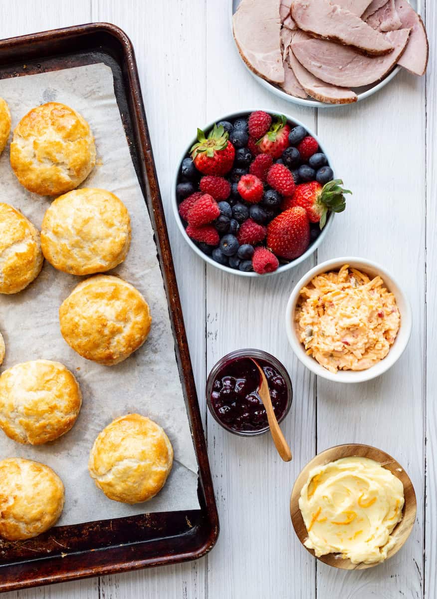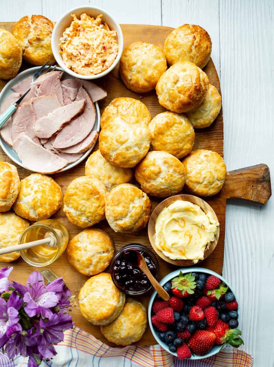 - Homemade biscuits - If you're not in the mood to bake biscuits from scratch, store-bought bakery biscuits or a bag of frozen biscuits (I love Mama Mary's) are a great way to take a shortcut. You can also substitute mini croissants, split and toasted English muffins, or even scones for a slightly sweeter board.