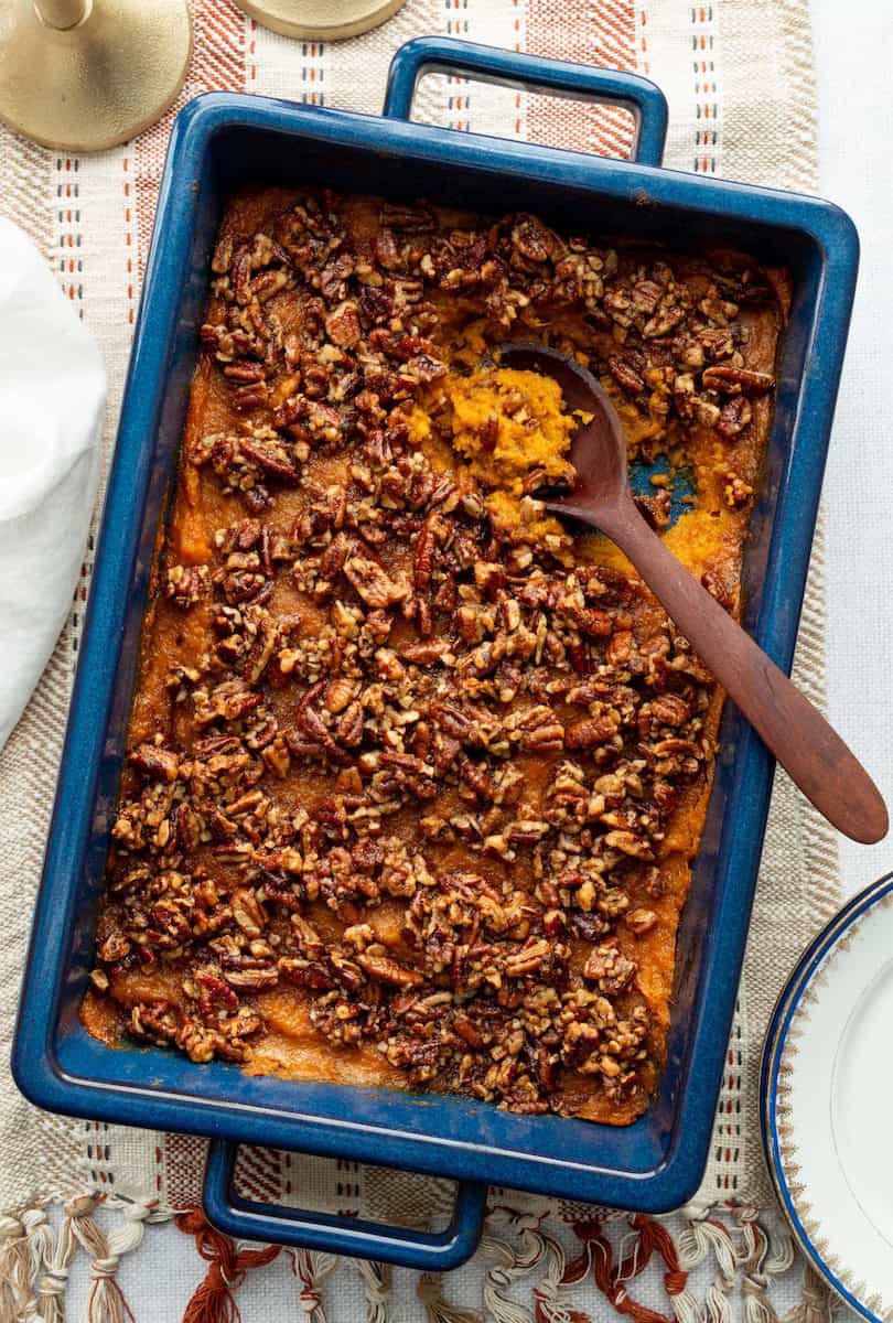 This version is all about the buttery pecan streusel on top because if you ask me, that crunchy pecan crumble is the best part. This recipe is the ideal blend of savory and sweet, and is guaranteed to get lots of requests to make it every year. (Speaking from experience here.)